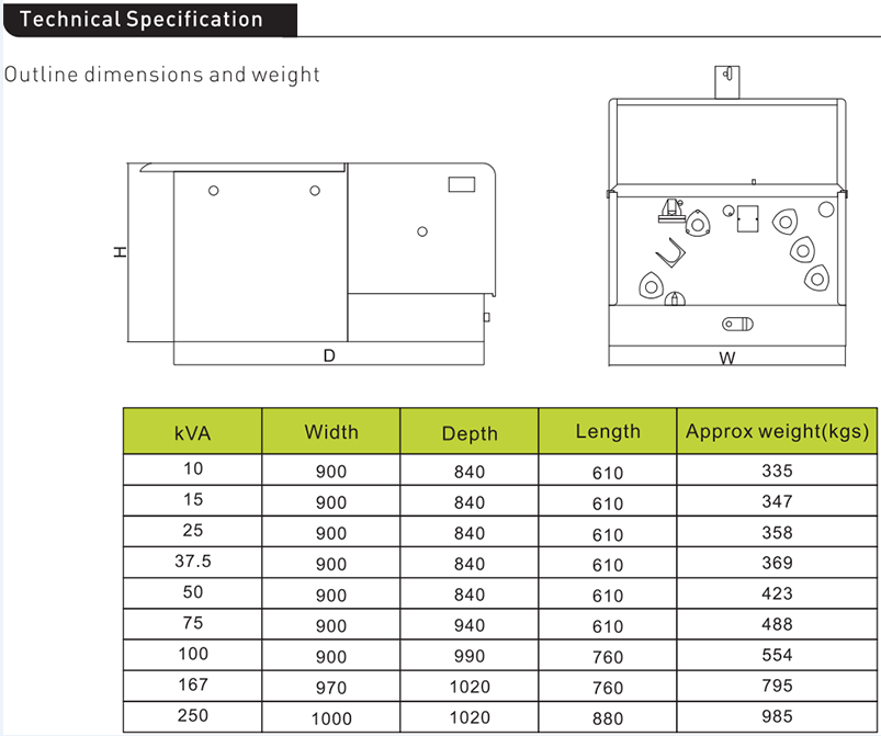 4]Standard or customer specific rating witha range of 10-167kVA