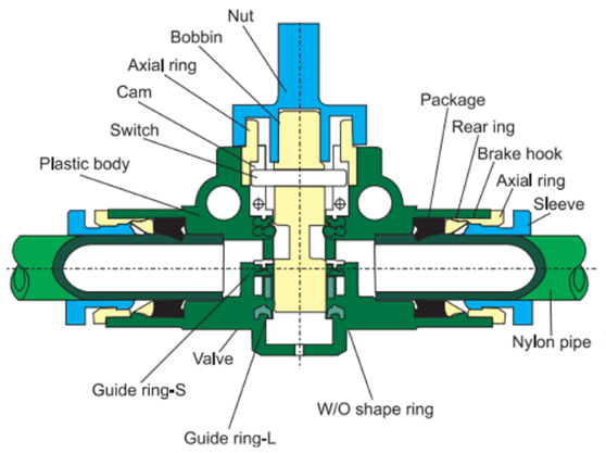 Various model with simple design, meet al demands of pneumatic laying of pipes. The plastlc pipe can rotate freely after installation. The release ring adopted eliptie design, easy to dismount.
