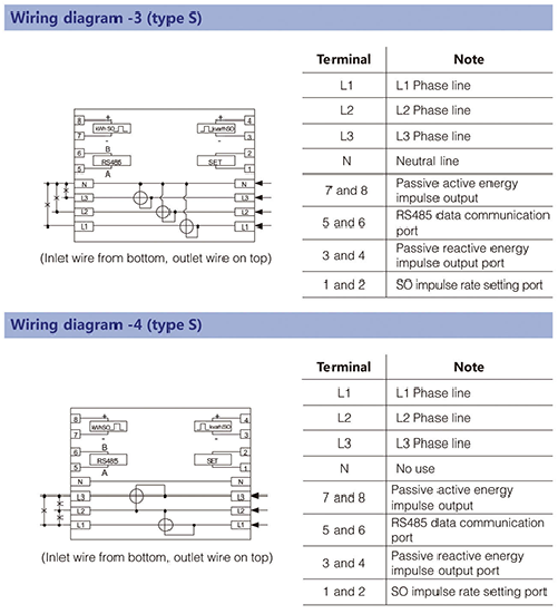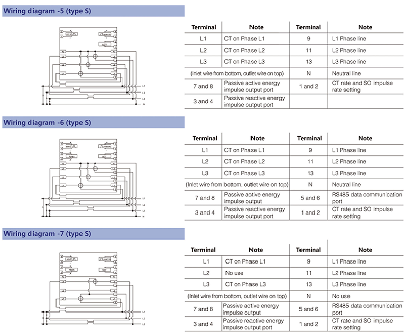 ◆ S-connection (inlet wire from bottom and outlet wire on top) has two types; direct connection and CT connection for option. For CT connection, there are 27 kinds CT rates to set, after setting CT rate, we can read the meter directly, no need multiplying the CT rate.