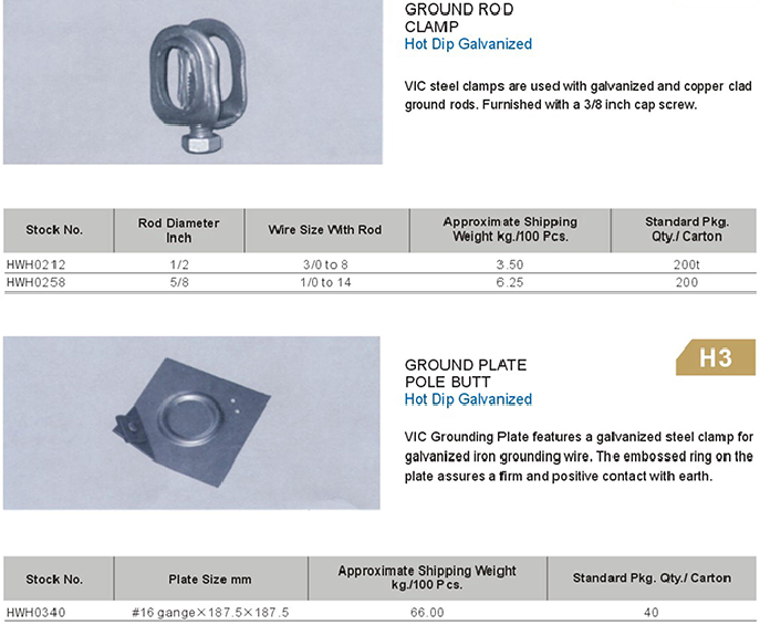 VIC Grounding Plate features a galvanized steel clamp for galvanized iron grounding wire. The embossed ring on the plate assures a firm and positive contact with earth.