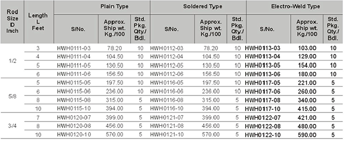 The electro-weld type has a 3/8 Inch round bar welded to the upper end portion of the rod.