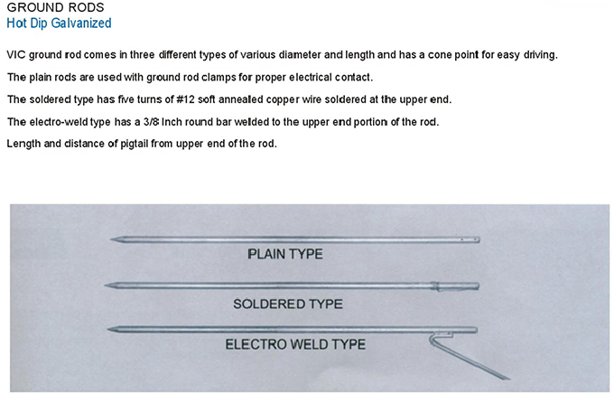 VIC ground rod comes in three different types of various diameter and length and has a cone point for easy driving.