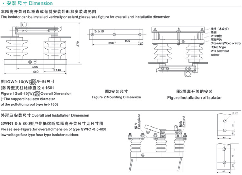 The ” GW9-10G ” type of outdoor high vltage isolator switchis the high vltage switchequipmentof single phaseAC50Hz.The product is suitable for power system with rated voltage 10kV to break power supply under circumstances of with voltage and nomload.