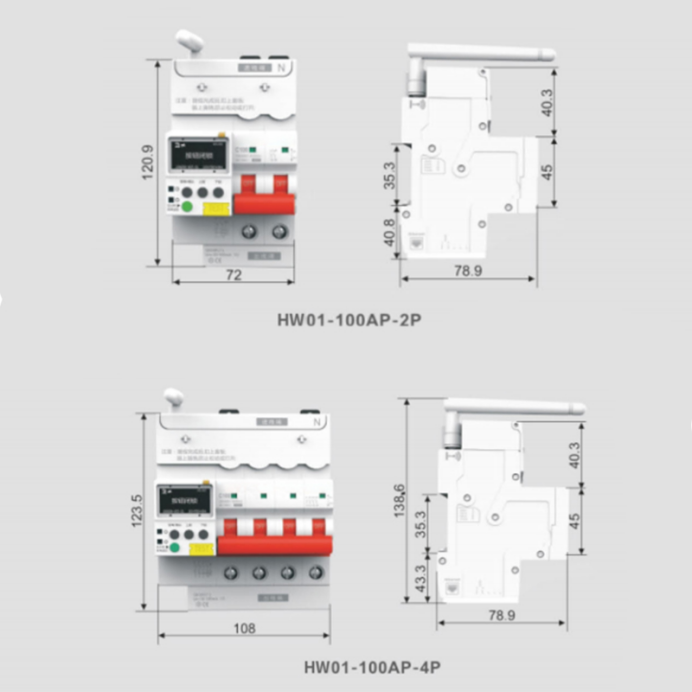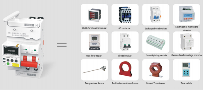 A multi-functional IoT smart switch that integrates power metering, overload, short circuit, over-under-voltage, phase loss, leakage, over-temperature protection, timing, over-under-power, anti-theft, remote opening and closing, and network communication functions.