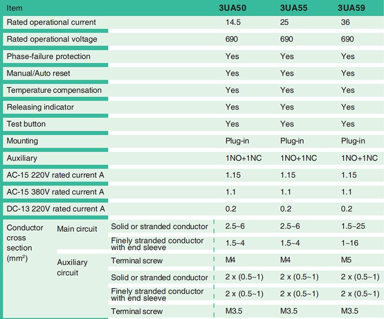 3UA series thermal overload relay are suitable for overload and phase-failure protection of AC