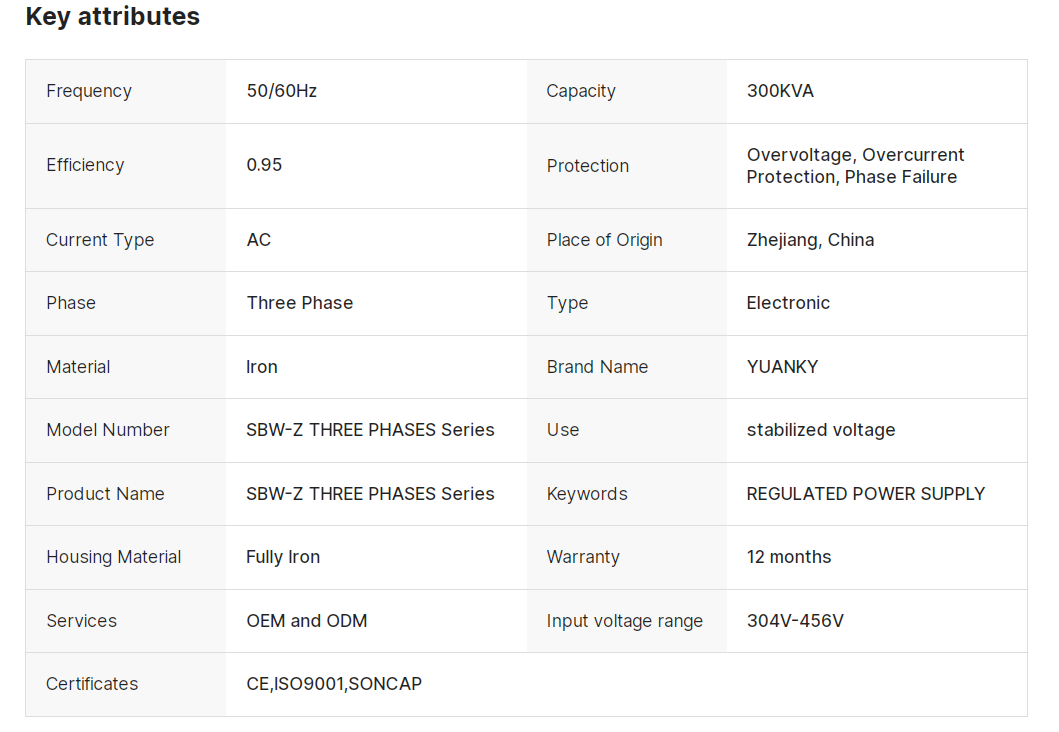 This series product compared with other types of voltage regulator, it has large capacity, high efficiency , no waveform distortionstable voltage regulation and other advantages, it supports widely load applied, stand by the instantaneous overload and continuouslong work , manual/ auto switch, can provide over voltage、 lack phase、 phase order and machine faully automatically protectConveniently assemble and reliably perating