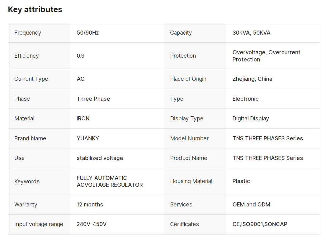 TNS series three phases high precision automatic voltage regulator is combined with TND(SVC) single phase high precisiorautomatic voltage regulator, Three phases adjust individually to guarantee steady safe voltage in per phase, The incoming powerof network is three phases four wires system, starlike (Y) connection, the output power can be made in three phases four wires oithree phases three wires ,three ampere meters indicate the output current per phase, lesting the outine vollage of per phase by aswitch & a voltage meter shift.