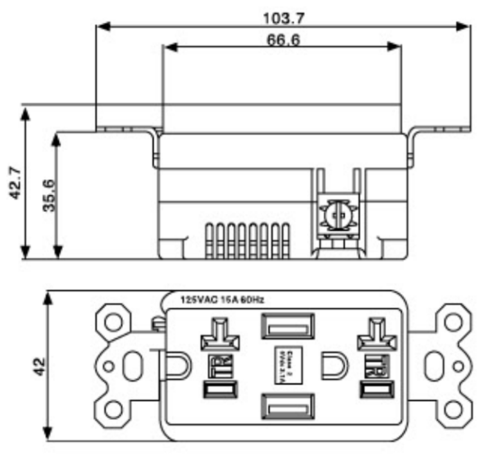 USB Charger, Decoration Duplex Receptacle 2 pole, back&side wired, Tamper Resistance with 2 USB charging ports (3.4A) NO LED Indicator |