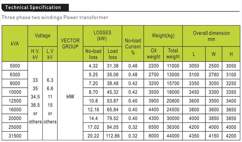 -kVA:5MVAthrough 31.5MVA