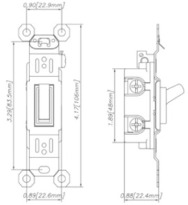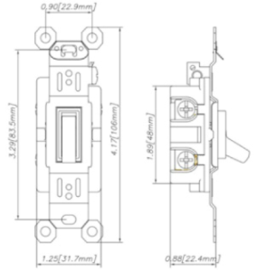 Decorator Switch Single Pole/3-ways Height 106.0±0.5mm Width 36.2±0.5mm Depth 31.2±0.5mm *Metal Bracket Thickness:1.2mm |