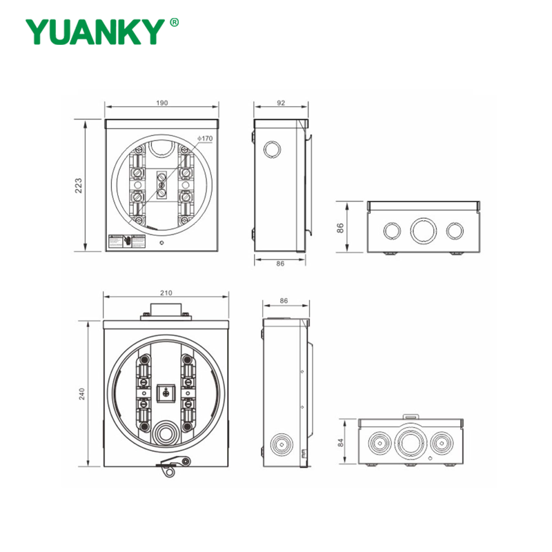 Features: 100A/125A,600V max, Single phase,2 or 3 wires Conform to ANSI 12.7 Heavy duty tinned copper jaw NEMA 3R type construction 1.2mm thickness (#18 gauge) galvanized steel sheet. Ample gutter space for easy wiring The fixed hub size 1/2″ to 2-1/2″ for option